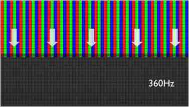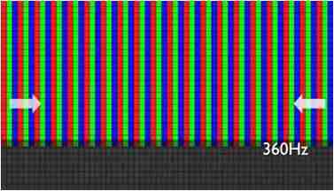 传统液晶驱动是从左到右单向进行,,,,在画面更新速度愈来越愈快的情况下,,位于驱动线路末端的右下角区域,,,画素的闸极来不及在短时间内获得足够电压,,,,无法显示出正确的颜色资讯。。
