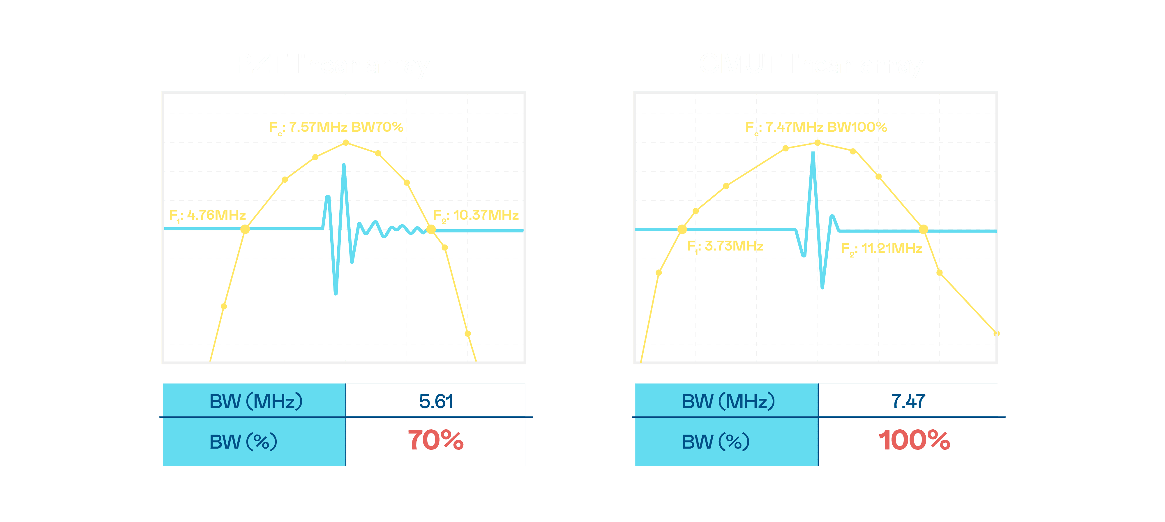 超音波影像的解析度高低,,首先取决于探头能发出的讯号频宽。。。。彩运网 CMUT 可提供高清晰的超音波讯号,,,提供高频宽、、高灵敏度、、、、影像纹理细节更高的超音波影像,,协助医护人员缩短影像判读时间及利用精准的医疗影像进行诊断。。。