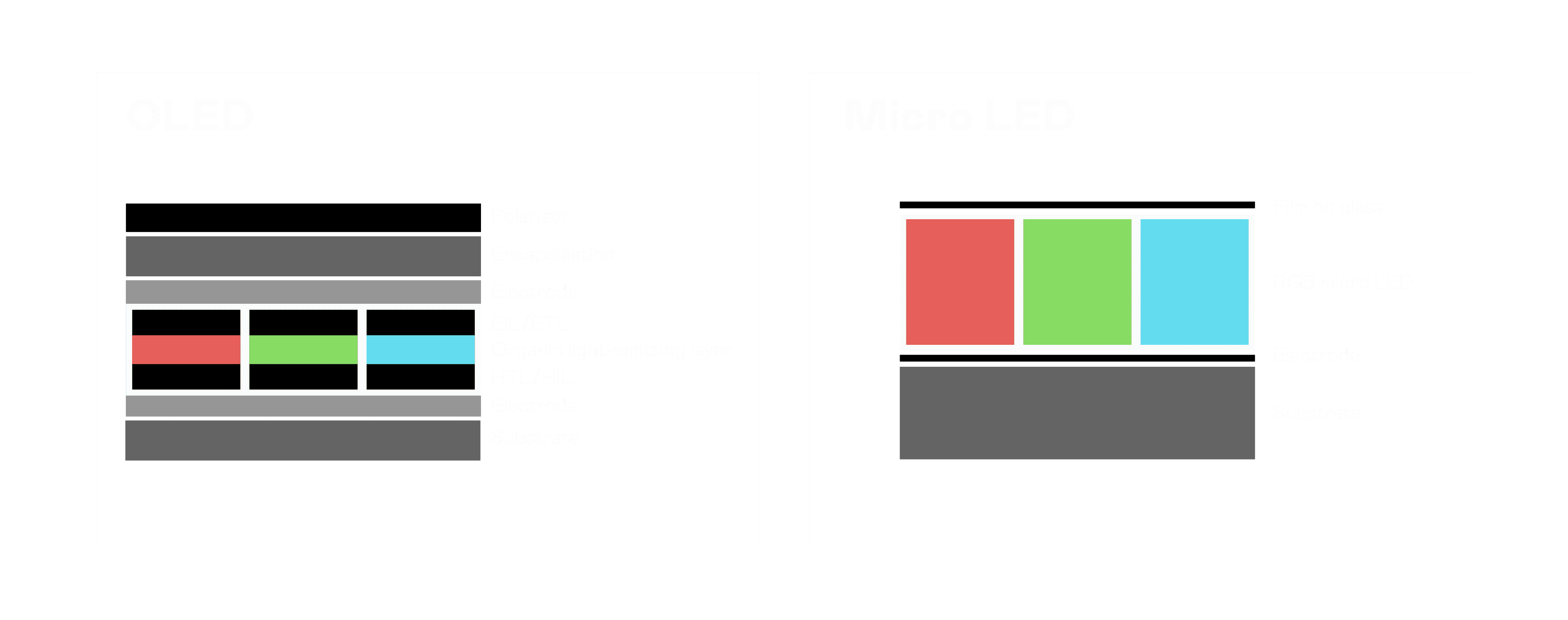 以 LED 做为显示画素,,,可让 LED 的发光效率发挥到极致,,从而让显示器具备优异的亮度表现,,不论是在户外或室内,,,均具备出众的显示效果。。。。同时,,与使用有机材料的 OLED 相比,,,,LED 具备更稳定、、、、寿命更长的特性,,,不仅不会有画面烙印问题,,,而且更不容易出现故障、、坏点。。